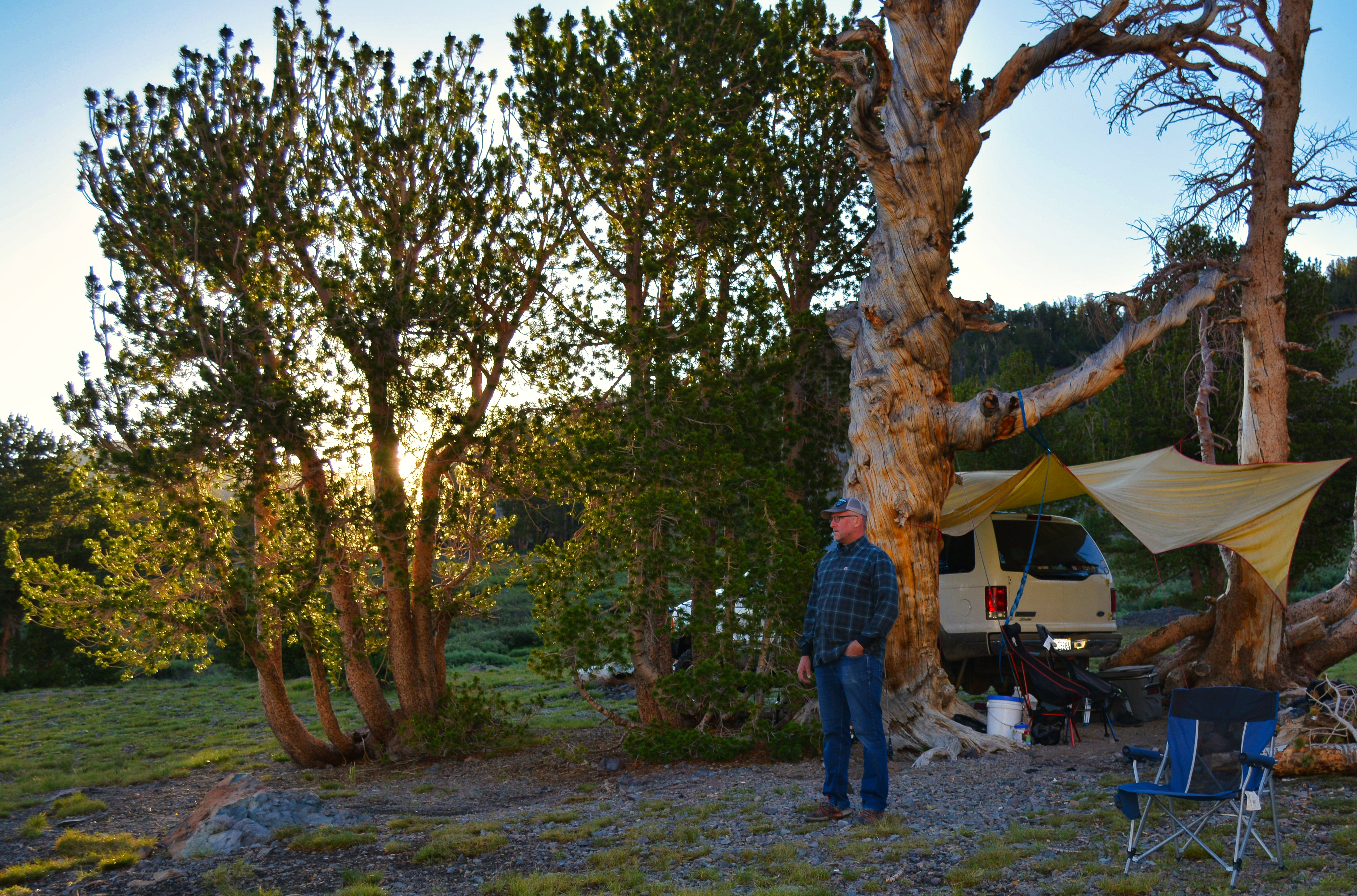 The late day sun filtered through a band of wildfire smoke bathing the White Mountain ridgeline in a crimson-sienna glow. Days earlier we had anticipation campground closures and prepared by scouring some maps for a suitable dispersed spot. These efforts payed off in the form of a secluded corner at the edge of the ridgeline looking out over Bishop to the west and the Owens valley to the north. There was not another soul to be found. This was a location that I will always look back upon and wish we’d stayed longer.