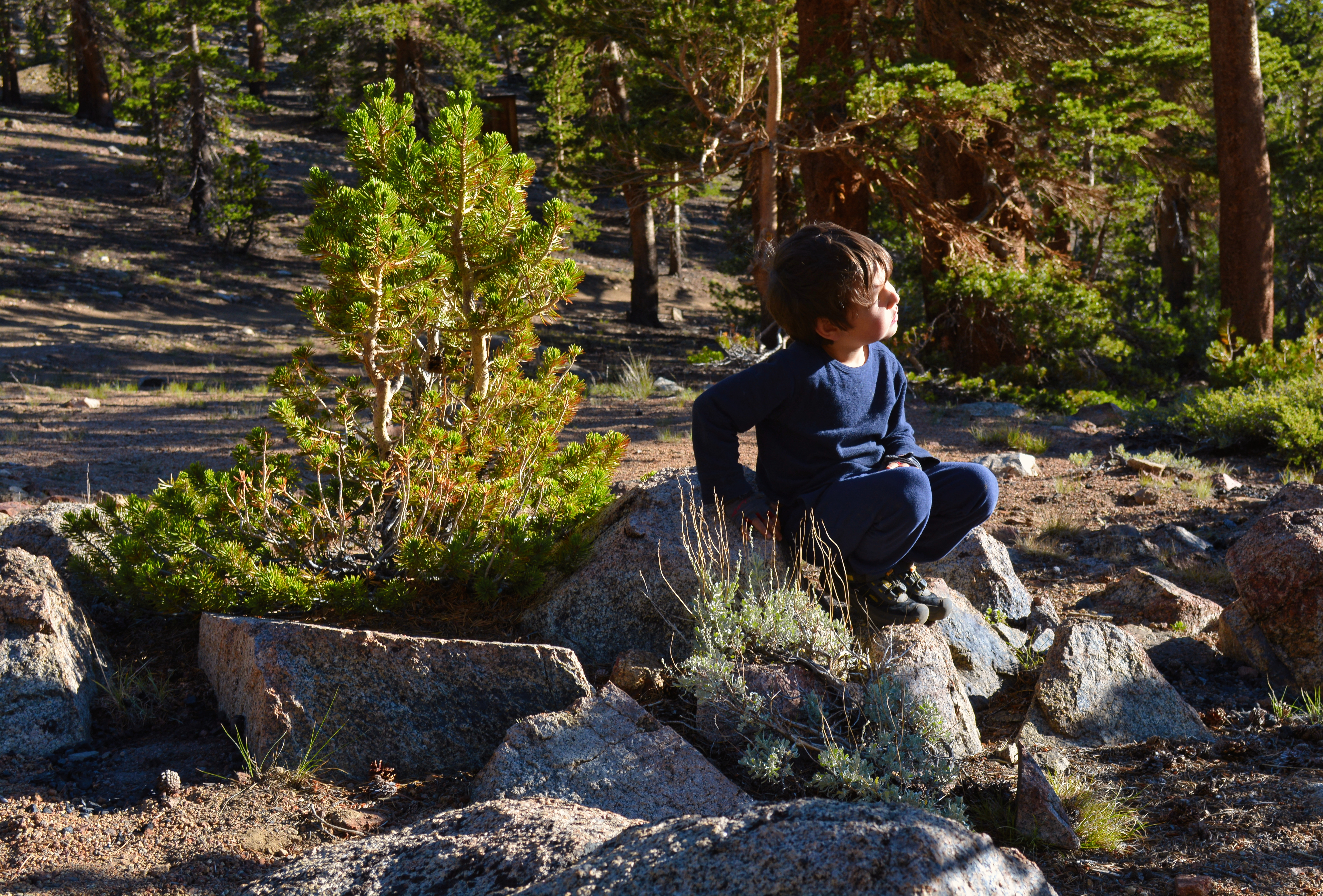 The visitor station at the Bristlecone trailhead was shuttered, still winterized from the fall of 2019. To our relief, the trails within the Ancient Bristlecones grove remained accessible, to our relief. Finn, the youngest member of the team, associated each of the oldest trees in the grove with his favorite superheroes. (Not sure how Methuselah appreciates being renamed Gecko Muscles, he’ll just need to adapt.)